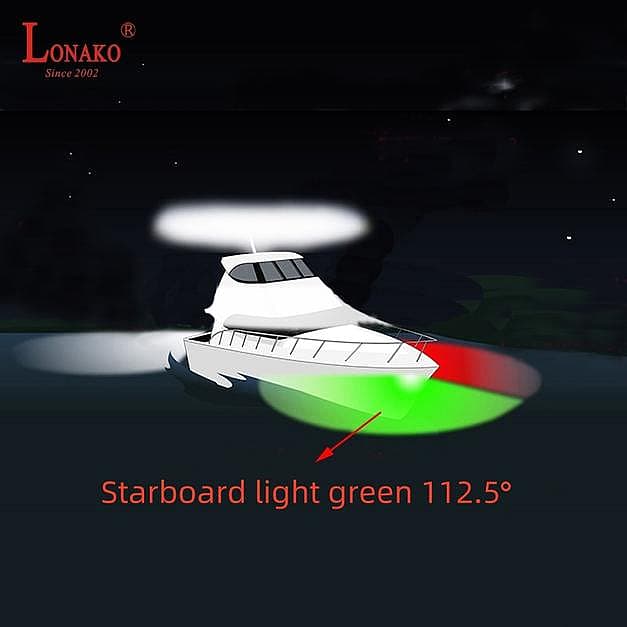 112.5° green lights/ Meets COLREGS72/ Deck mount/ Meets IEC60945, ABYC A-16,CE/ IP67 Waterproof