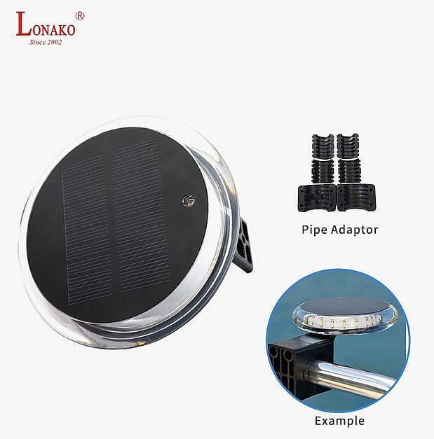LNK-PL-RGW is a solar rechargeable lithium battery positioning light for small ships, yachts, fish boats, wharves, and berths with CE/ FCC approvals. It can use a remote control to emit 112.5°Red & 112.5°Green & 135°White tri-colour light and 360°White light. The product is elegant, with a remote and pipe mounting adaptor included. Each type of light has different functions and all the functions can be circularly changed by manual switch and wireless remote.