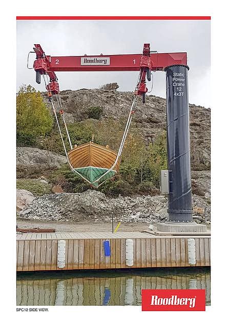 The Space Saving solution. A slew crane is the alternative to a boat hoist. A slew crane itself takes up much less space. It also requires a much lower investment, in foundation, pavement and in the product itself. At Roodberg you can find fixed mounted cranes, the SPC series, with 1 or 4 lifting points in different designs and weight classes.