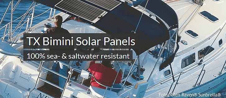 Lightweight panels with textile frame made of high-quality marine tarpaulins. TX modules have been specially developed for mounting on Bimini or Sprayhood. They are also based on laminated high-performance solar modules with the accustomed SunWare quality. The use of these modules enables a mobile use on otherwise unused areas that provide sufficient space for a considerable charging current. Quick release fasteners LOXX tops are used in the binding band - it can be removed quick and simple.